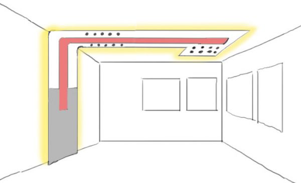2050_Decke_1.jpg Ja das solls werden und komplett mit Leds. Also rot ist Lichthof mit wahrscheinlich vielen rgb fluxen oder P5(steuerbar via Fernbedienung). Achja, das hellgraue links ist Spiegel. Und das gelbe soll warmweiße indirekte beleuchtung sein, die die Decke beleuchtet, also indirekt ein b...