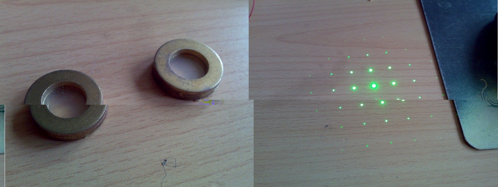 Wenn man aber mal mit einem Laserpointer durchleuchtet, sieht man wie der Strahl in mehrere aufgeteilt wird.