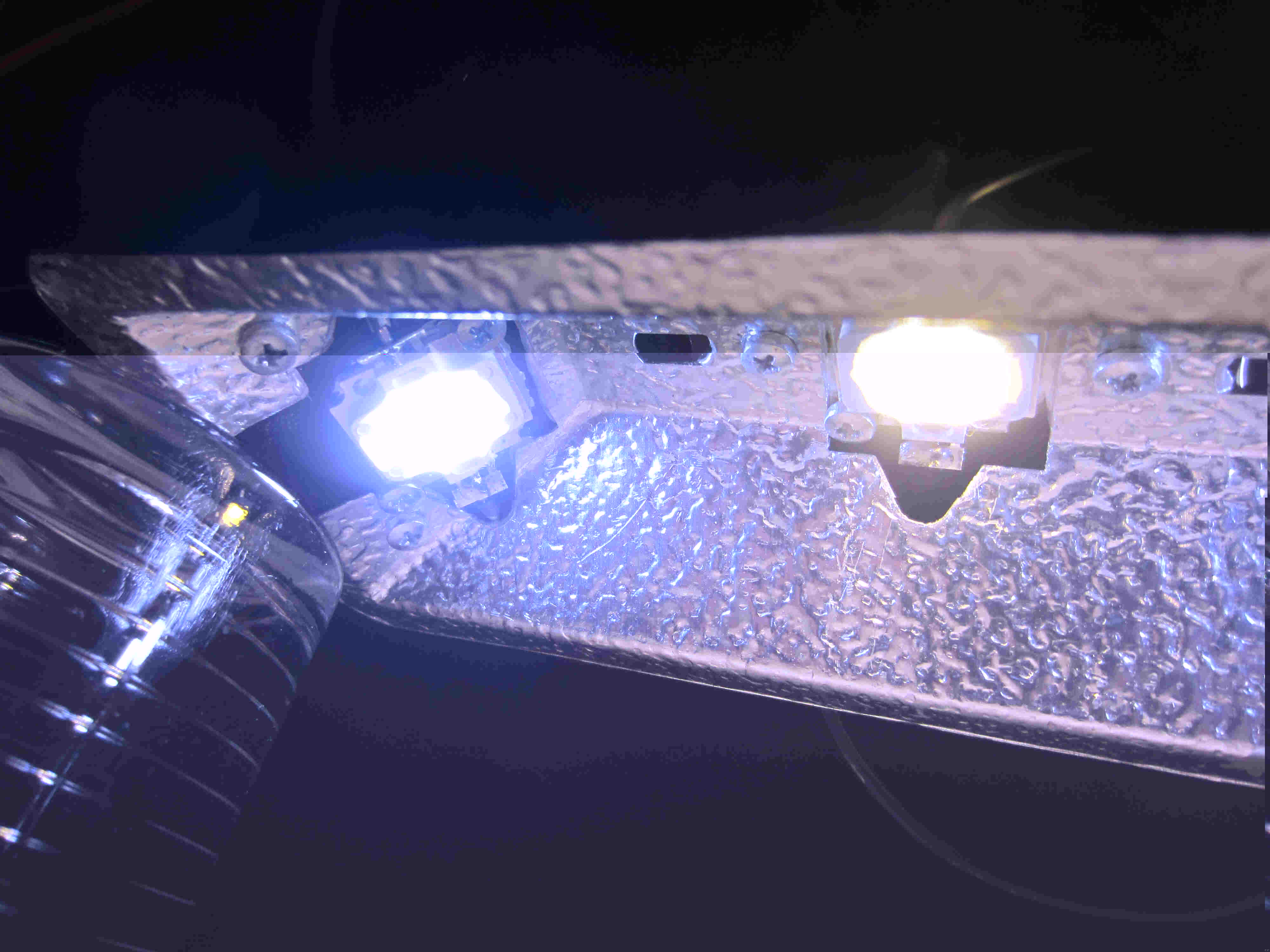 Ich habe in dieser Leuchte 2x 16000 K / 10 Watt + 1x 3500K / 10 Watt und zusammen 2800 Lumen.
