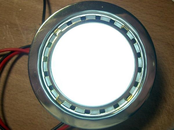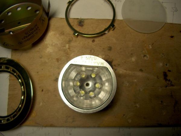 Ein erster Test mit einer der bisherigen Leuchten zeigte, dass die Helligkeit von sechs 0,5 Watt - LED´s höher ist als die der 10 Watt Halogenbirne, die ich bisher drin hatte.