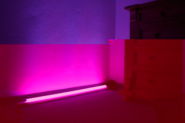 Wow! Also, da die Leds so ganz knapp aneinander gereiht sind, wird die beleuchtete Fläche (hier die Wand) komplett ohne Übergänge "gefärbt"!!