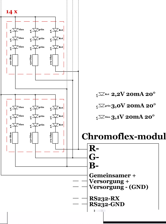 Ok.. die angebenen Widerstandwerte sind dann schon bezogen auf die Leuchtkraft der Dioden??