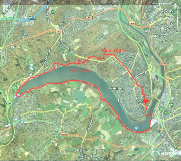 Mein weg führte erst etwas an der Straße lang bis hoch (160m höhe) in einen Wald, von dort aus bin ich dann Teils Pferdewege runter bis zum See (71m höhe). Um die Runde zu Vervollständigen noch über das Stauwehr und auf der anderen Seite zurück...