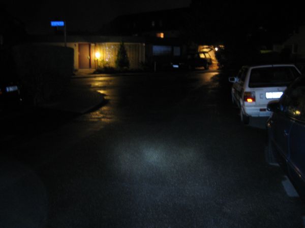 Was ich vielleicht noch erwähnen sollte, auf dem weg zum Wald musste ich ja noch einen Teil Öffentliche Straße befahren. Auf dem weg habe ich 2x eine Lichthupe von entgegenkommenden Autos bekommen. Und das obwohl ich das licht extra etwas weiter runter gestellt habe, so das es 3m vor mir auf den Boden leuchtet. Also überlegt euch genau, ob ihr eine P4 braucht um damit durch die Stadt zu gurken. Dafür ist die Blendwirkung einfach zu groß 8)