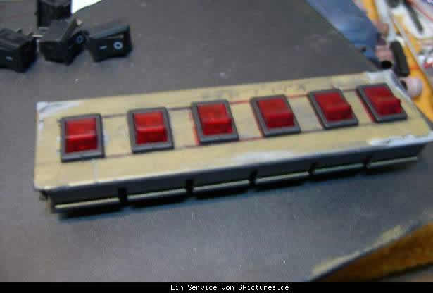 Da hab ich erst einmal das Schalterpult zugeschnitten,befeilt und natürlich in die End-Farbe lackiert.