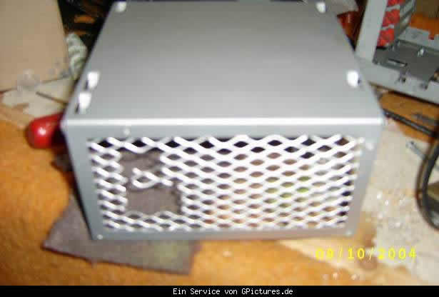 Nun ging es an´s Netzteil,hier wurde erdt einmal die "Rüchwand abgeflexst und gegen eine neue aus Streckmetall ausgetauscht,ein Neuer rot beleuchteter lüfter mußte natürlich auch hinein.