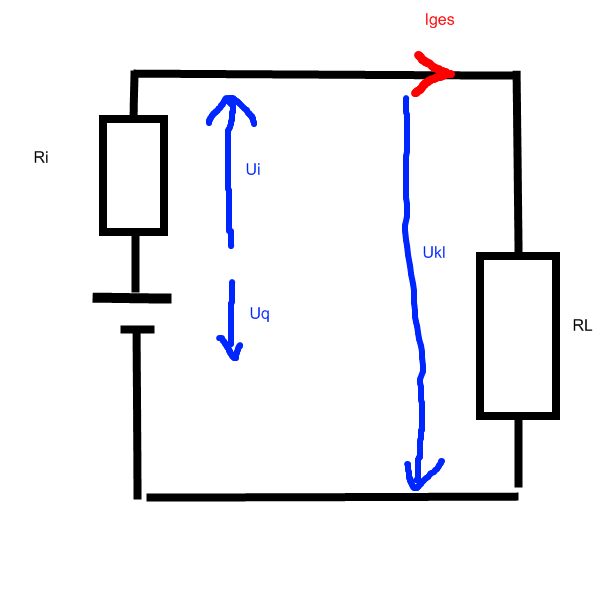 Spannungsquellen haben einen Innenwiderstand. Dieser begrenzt den Kurzschlussstrom und die Klemmspannung.