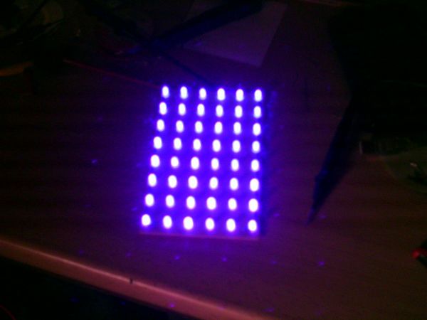 also ein 6x8 UV-LED-Cluster auf einer Eurolochrasterplatine is recht schnell aufgebaut (12V Betriebsspannung, 3 LEDs in reihe mit nem 75 Ohm widerstand) und schaut dann so aus: