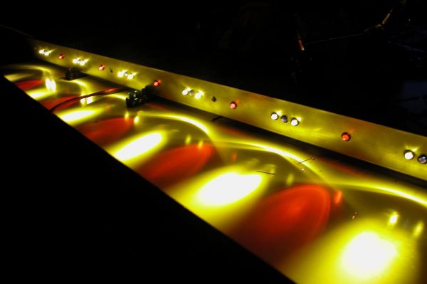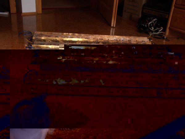 Des weiteren wurden schon mal aus Neugier 4 Leds in die Leisten eingesetzt. (Kabelgewirr mal bitte nicht beachten)