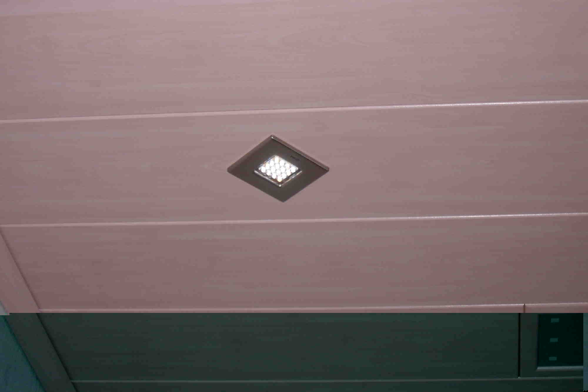Holzdecke mit Einbaulampen her.Na dann alte Decke runter,neue Decke dran.