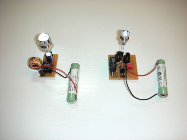 Hier ein Bild mit den zwei aufgebauten Schaltungen: Und hier nun der ultimative Helligkeitsvergleich (an meiner Zimmerdecke):