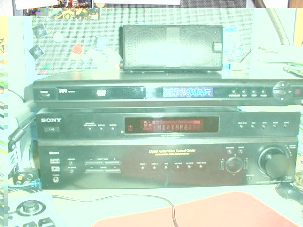 Ich höre mit dem Sony 5.1 Receiver STR-DE497 und dem DVD Spieler SEG DD 333.