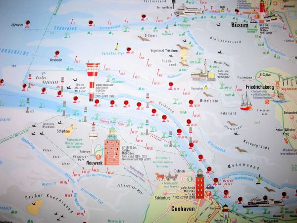 Nachdem ich dieses Jahr an der Nordsee war, habe ich mir eine touristische Seekarte der Nordseeküste gekauft.