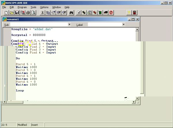 In diese leere Seite könnt ihr euer Programm/Code reinschreiben. In einem seperaten Tutorial wird das untere Programm/Code und die einzelne Befehle besprochen. Wer auch das gleiche Board von Pollin verwendet, kann den Code unten übernehmen:
