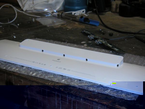 Also zum ersten möchte ich mal sagen das ich die Tastatur Beleuchtung nicht erst hier durch diverse HOW² aufgegriffen habe. Denn ich habe schon länger mit dem gedanken gespielt so eine beleuchtung zu bauen. Leider war das bei meiner alten Tastatur nicht möglich, bzw. die war mir einfach zu grau. Also habe ich mich nach unterschidlichsten Tastaturen umgeschaut. Nach Möglichkeit sollte diese transparent sein, habe aber nicht so wirklich was gefunden, bis ich durch einen Kumpel auf die Apple Tastatur gestoßen bin. Hat ein transparentes Gehäuse und gefällt mir recht gut.