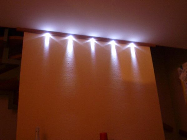 2 Lichtkegel sehen vom Lichtbalken etwas anders aus, vieleicht müssen diese Led´s mehr aus der Leiste rausgucken, malsehen.Da an der rechten Led ist eine Lichtspiegelung vo meinem Küchenlicht.