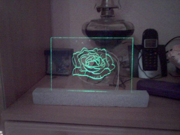 Hier noch mein Lieblingsbild,eine Gravur auf Glass Mit roten LED`s beleuchtet.[