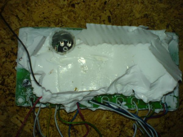 Wenn die Platine vor dem Ausspritzen mit Silikon nicht entfettet wurde, wovon auszugehen ist, kann das Silikon dann relativ einfach soweit entfernt werden, dass die Bauteile erkennbar sind.
