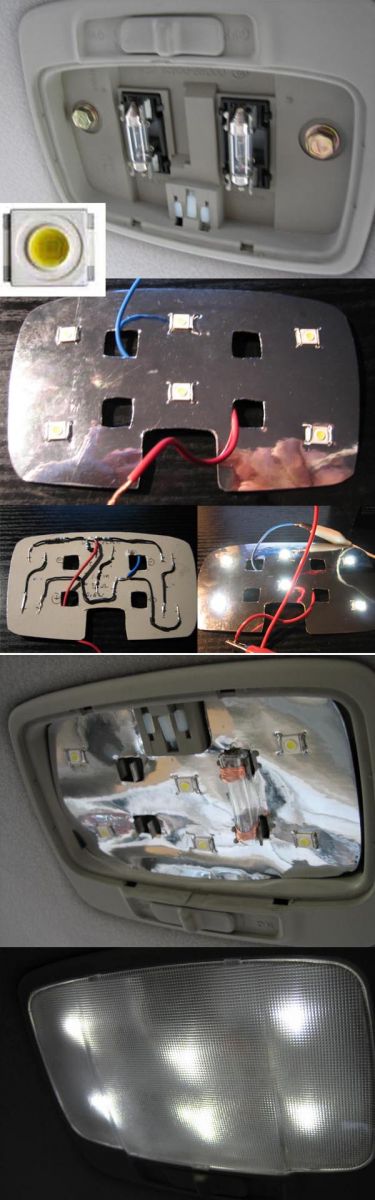 Nach dem gleichen Prinzip wie im "Kleinen SuFlu-Mod" mit den Türwarnleuchten hab ich nun auch meine Innenleuchte vom Obst befreit. Statt 2 5W-Sofitten leuchten nun 6 NovaLEDs*.