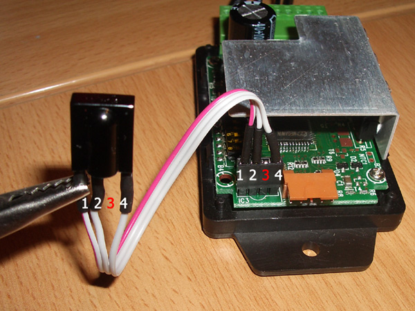 Nachdem ich die Beinchen selbigen entsprechend gekürzt, gebogen und gegeneinander isoliert hatte, habe ich den Widerstand zusammen mit den Leitungen entsprechend angelötet (wie gesagt Pin3 = Rx | Pin5 = Gnd).