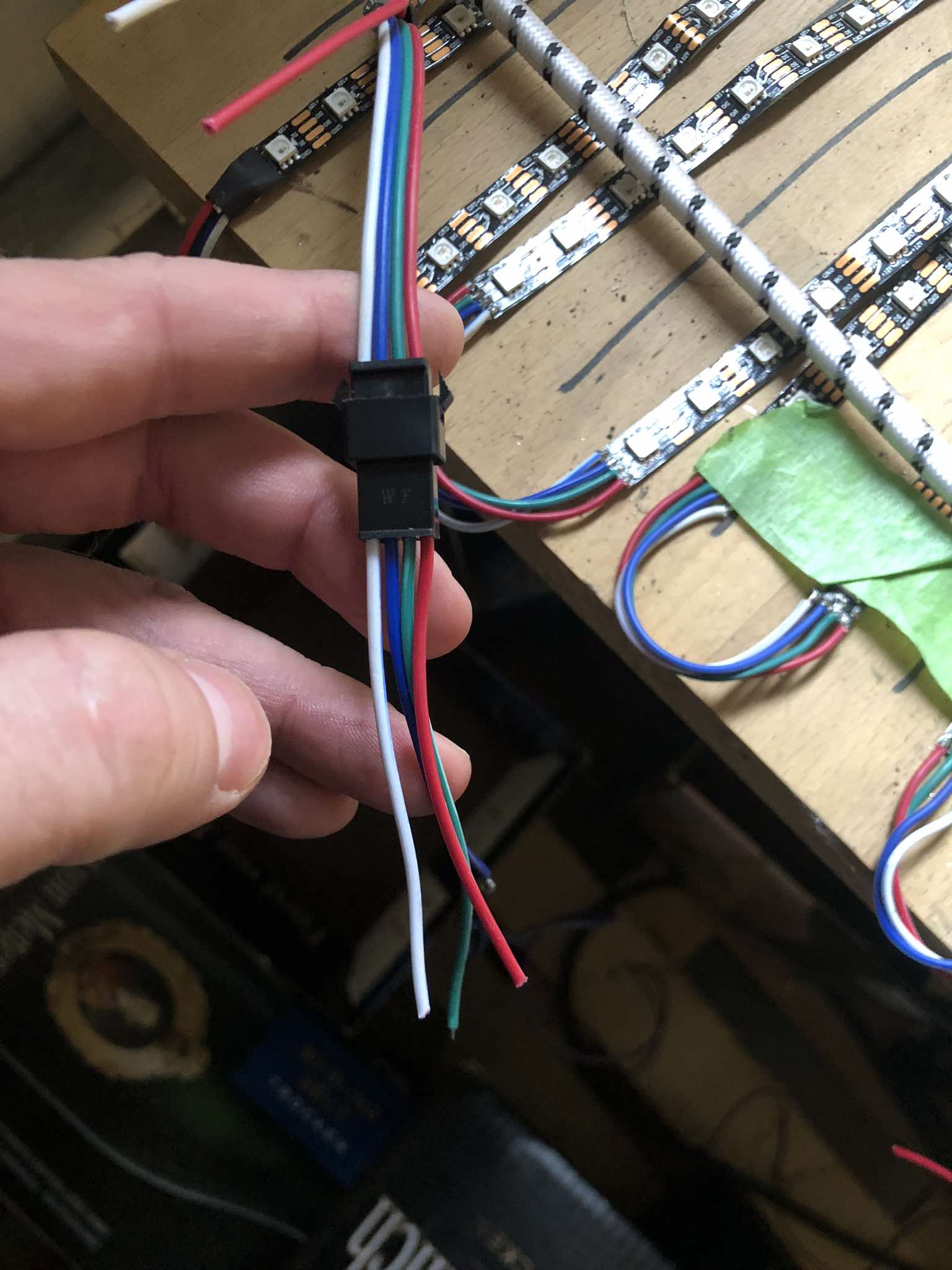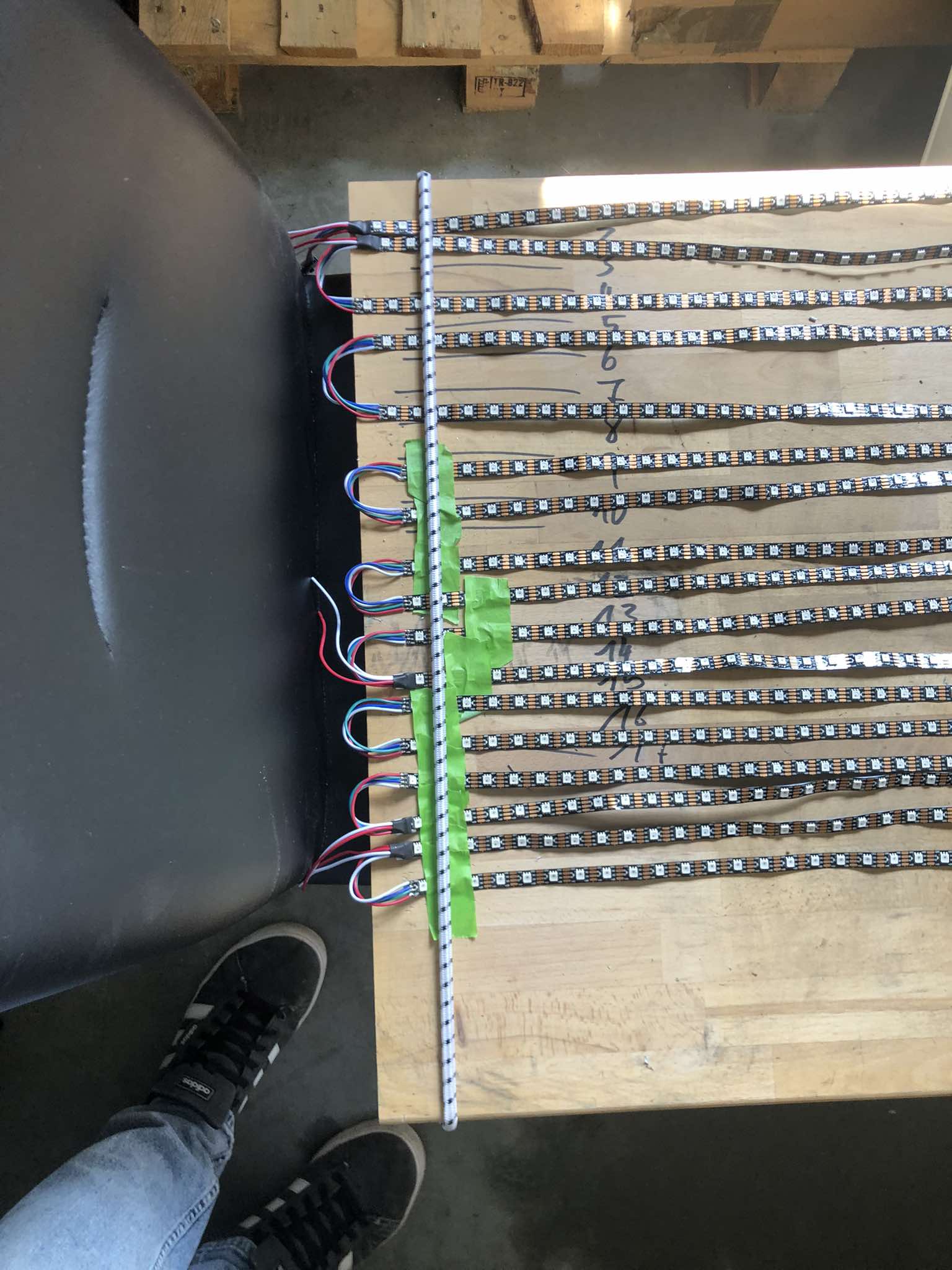 Bei so vielen Streifen sollte jeder Streifen direkt mit dem Netzteil verbunden werden. Die Leiterbahnen auf den Streifen sind nicht für so hohe Ströme ausgelegt. Ggf. noch zusätzliche Kondensatoren verwenden. Siehe z.B.: https://docs.codm.de/assets/wled-contro ... WS2815.pdf