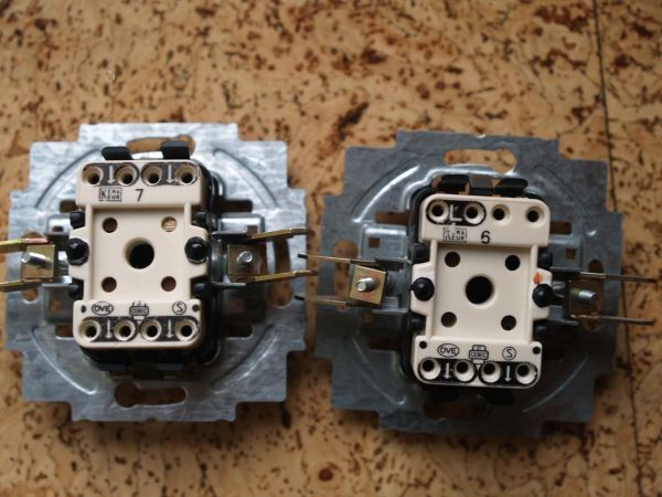 Der links ist ein Kreuzschalter, der rechte ist ein Wechselschalter.