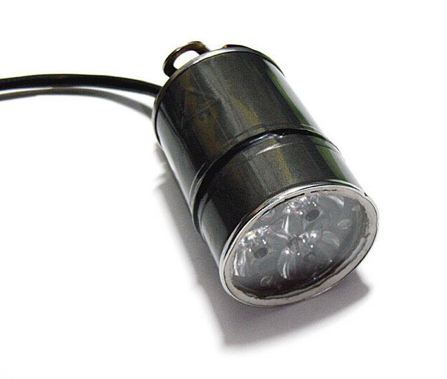 Was das Gewicht der Lampe am Helm angeht, so ist es nicht höher als bei vergleichbaren industriellen Kopfleuchten für unter Tage, vielleicht mit Ausnahme der allerneuesten Lampen. Natürlich baut die Lampe etwas länger, was aber nicht störend bei der Benutzung ist. Man geöhnt sich sehr schnell daran. Das Gehäuse ist aus Weißblech (stabil, reißfest und gut wärmeleitend, deshalb schon sehr leicht. Das Hauptgewicht wird von der Kühlwasserfüllung und den eingelöteten Kupferblechen im Inneren des Gehäuses gebildet, in meinem Fall ca. 80 - 100 g. Es ist möglich, hier noch durch entsprechende Gehäusegestaltung etwas Kühlflüssigkeit zu reduzieren, was natürlich auch das Gesamtgewicht nochmals verringern würde. Bin schon bald beim Bau einer neuen Leuchte mit ähnlichem Grundprinzip, aber verbessert. Zur Zeit experimentiere ich dahingehend, den Betrieb von 3 Stück P4 mit Tripelreflektor auf kleinstem Raum mit dem minimal notwendigsten Kühlwasserumfang bei 1000 mA Dauerbetriebsstrom zu optimieren.