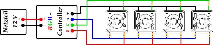 Da die Versorgung mit 12V sich hier etabliert hat, werden die Beispiele auch für 12V ausgelegt.