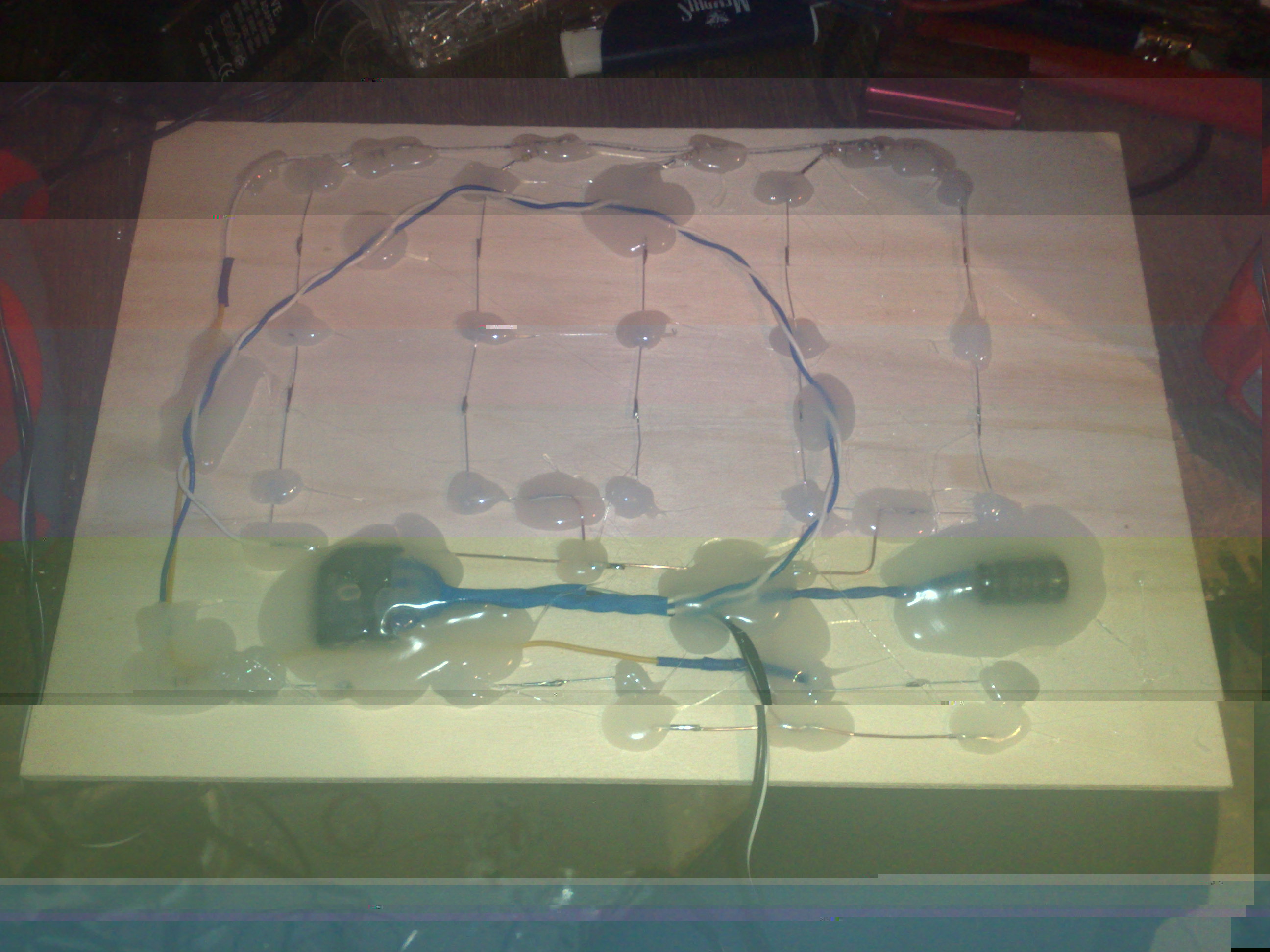 Die Beleuchtung: 20x 5mm LEDs, jedes LED hat eine 5mm Bohrung