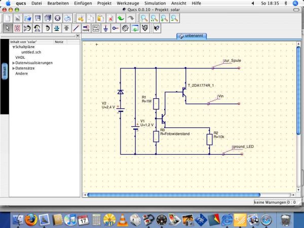 hmm, hat die Solarzelle (in der Schaltung V2 2,4V) in diesem Fall einen einfluss bei Dunkelheit?