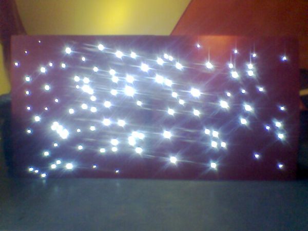 Hmm, ich muss zugeben sieht echt Klasse aus. Noch besser wäre es vielleicht, wenn du noch ein paar kleinere LED's und welche die nicht so hell leuchten eingebaut hättest. Sieht so aber trotzdem echt gut aus.