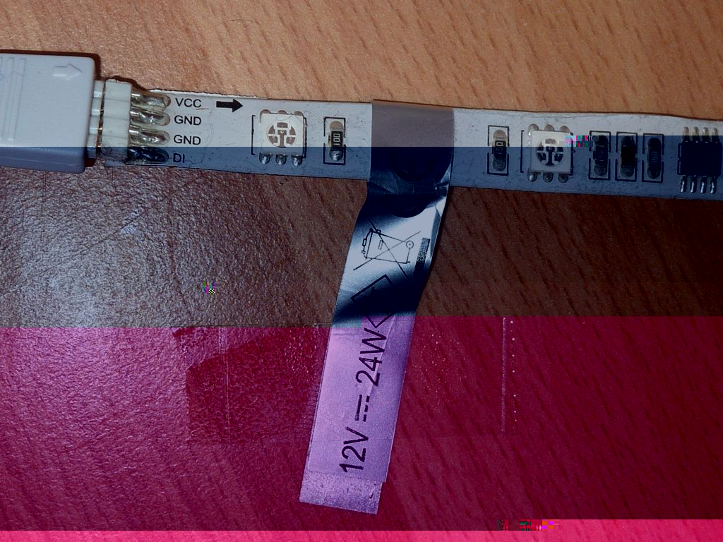 Die mir vorliegende LED-Stripe hat aber VCC GND GND DI.