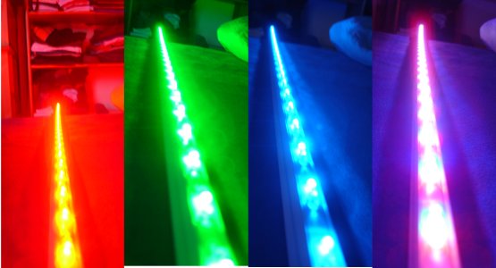 140cm Leiste: 3x30 LEDs, entspricht einem Abstand von 4.66cm zwischen jeder LED der gleichen Farbe.